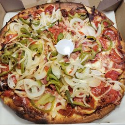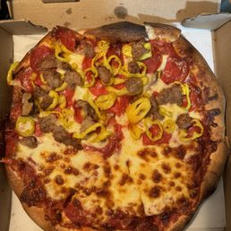 A well-known local pizza place, and it's really earned it's reputation The pizza sauce is a little sweet, but the cheese and pepperoni complement it well and it's just a delicious, reasonably priced pie !